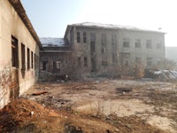 A ruined school (?) around the corner from my house. Community members were working together to safely tear it down when I left. Wild dogs had taken up shelter there.