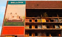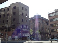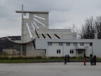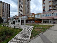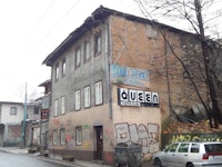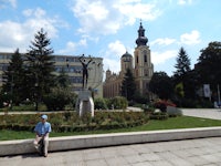 The old Turkish Bath House, empty shell of a bombed-out building from the Austro-Hungarian period and the Catholic Church