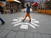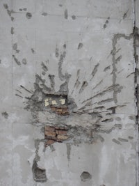 These mortar “roses” are everywhere in the city. I began documenting them, collecting them with my camera. Somehow it gave me a little control over the horrible imbedded memories I knew they represented