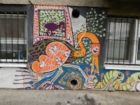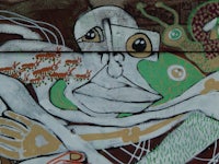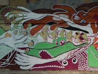 This artist’s murals usually depict the dead buried underground but still seemingly living among the snails, ants and worms